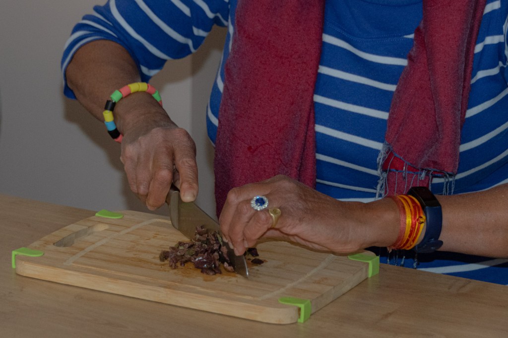 Pour savourer davantage le Maitrank, nous avons organisé avec les bénévoles de l’Herbe folle un atelier cuisine chez Yasmine Ouannoughi de C Très Bio.