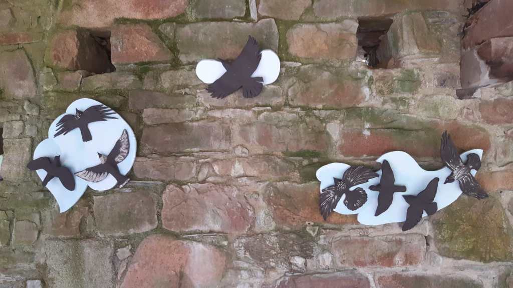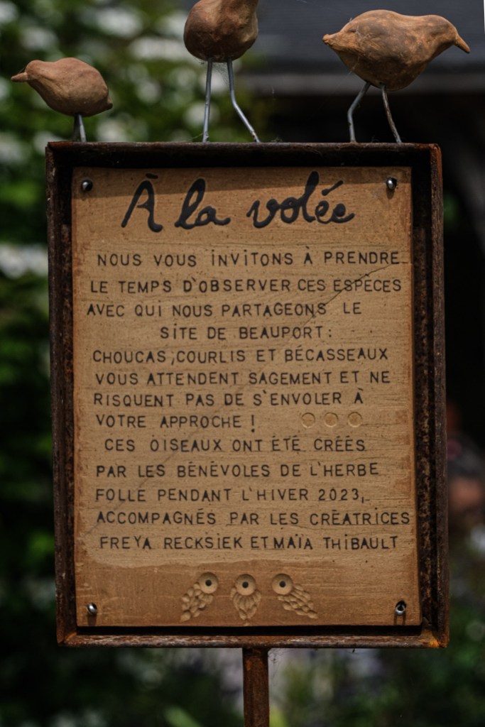 En prenant pour modèles les oiseaux qui occupent le littoral autour de l’Abbaye, nous les avons invité à participer à la conception d’une œuvre collective qui est venue décorée les espaces extérieurs de l’Herbe Folle et du domaine naturel de Beauport.