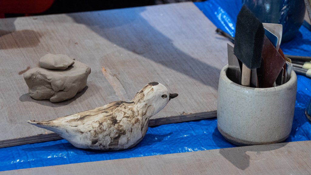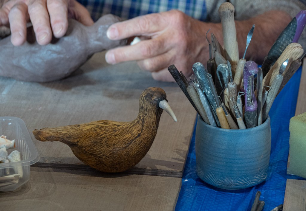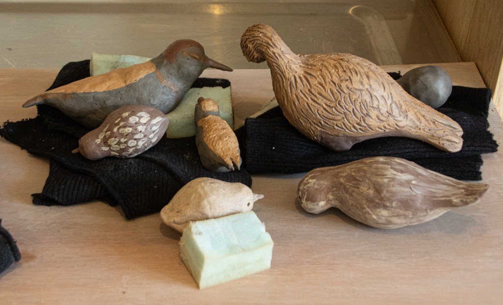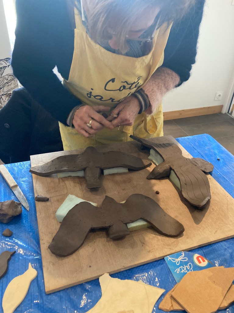 Mais avant de commencer, à modeler, les artistes (également bénévoles de l’Herbe Folle), se sont rendues sur le site de Beauport avec Jacques Aduriz, le garde du littoral, afin d’identifier les oiseaux présents sur le domaine.