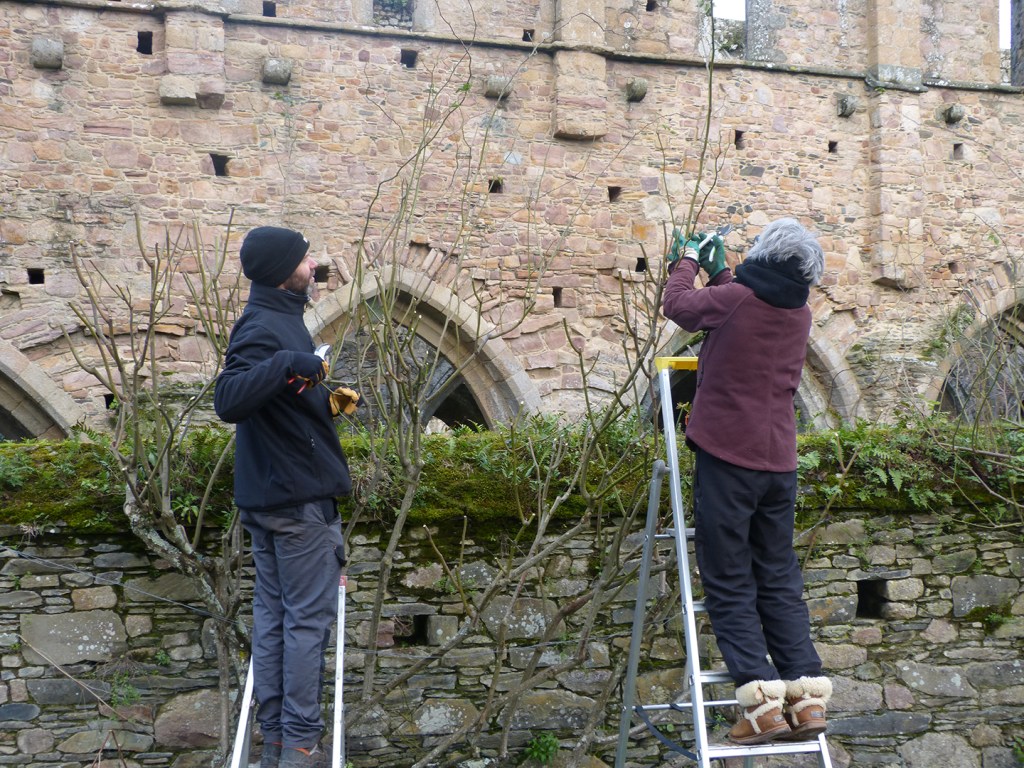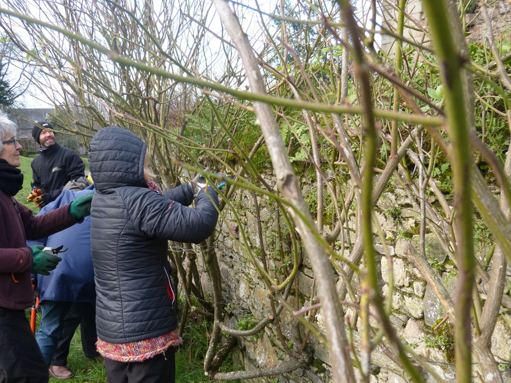 Les bénévoles impliqué.es dans les chantiers de taille ont alors la chance de pouvoir entretenir des rosiers anciens, de différentes variétés et de s’initier à la taille de rosier grimpants, des rosiers lianes et des rosiers couvre-sol. Par la même occasion, ces ateliers d’apprentissage nous aident à prendre soin des jardins de l’Abbaye !