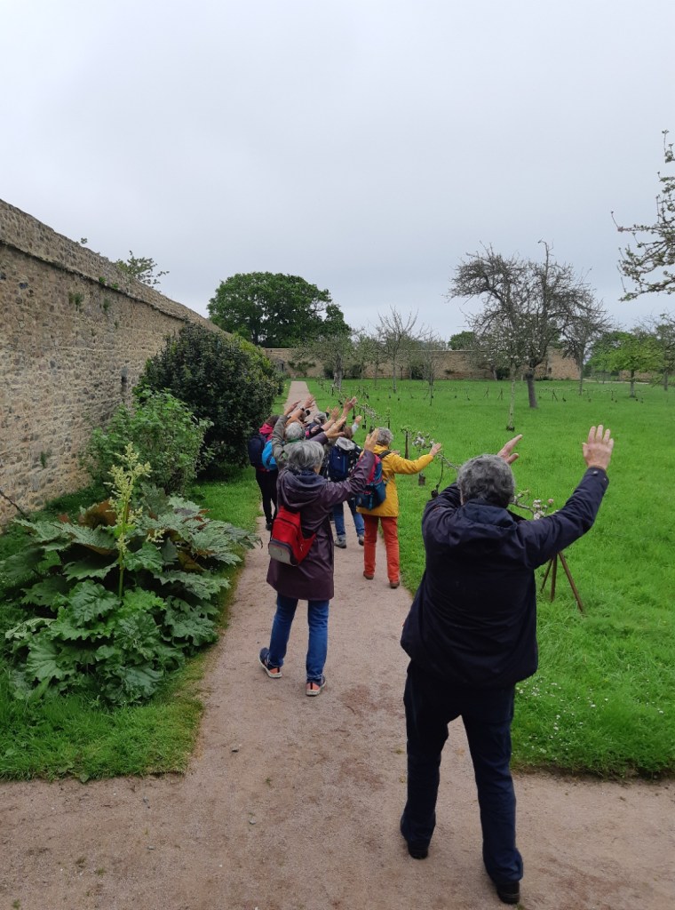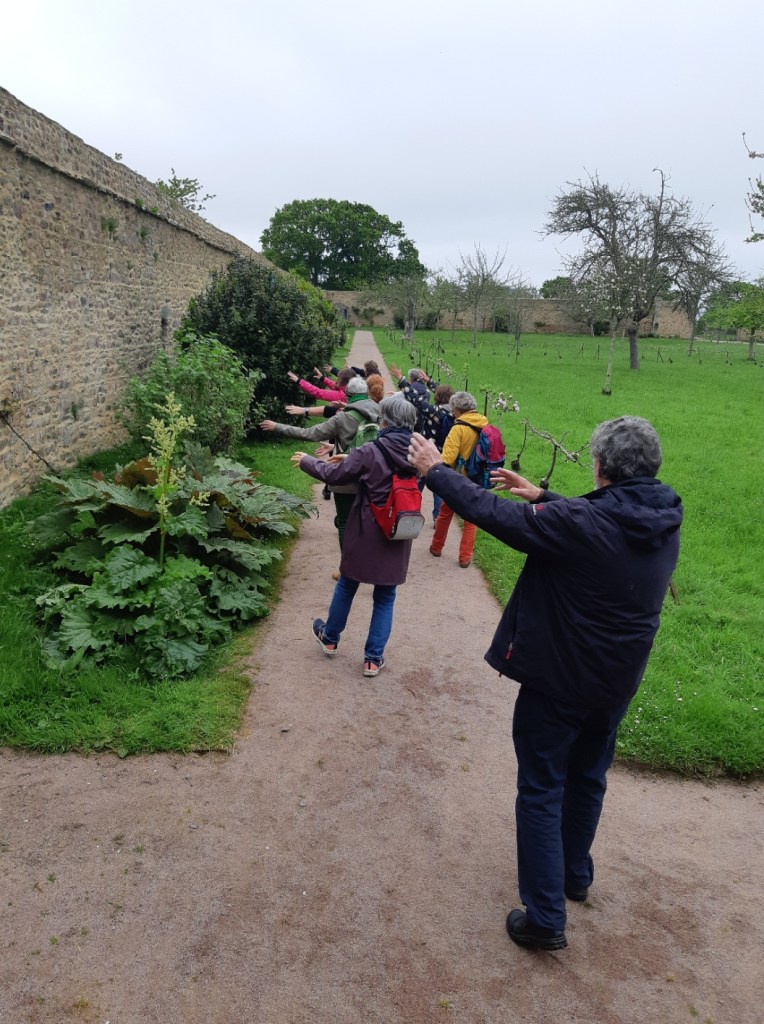 Brigitte, enseignante de Qi Gong, propose aux bénévoles une balade alternant des temps de marche en conscience, des respirations rythmées et des exercices corporels favorisant la méditation et l’ancrage dans l’instant présent.