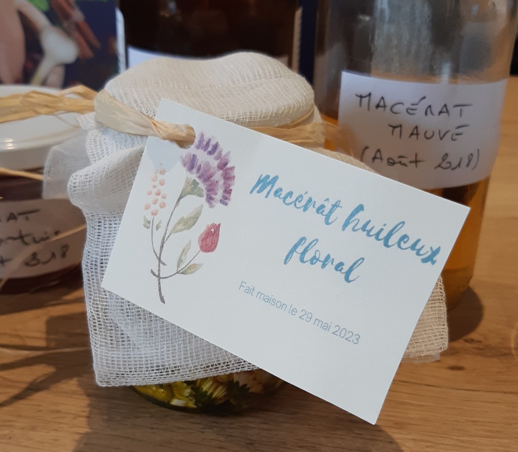 Claire a pris le temps de nous expliquer les vertus des huiles et des fleurs qui peuvent être utilisées en macérâtion pour fabriquer un macérât huileux.
