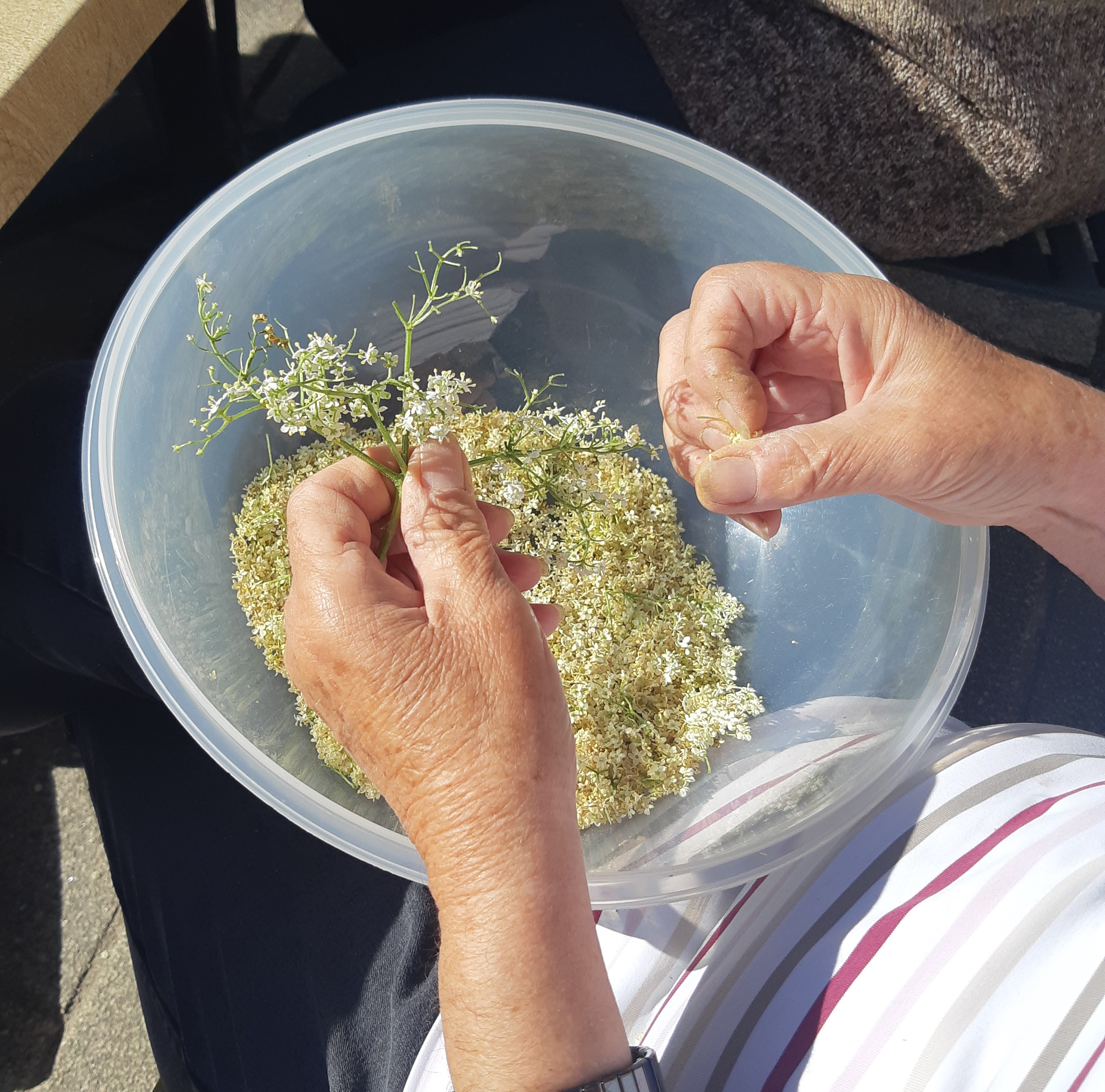 Michèle, associée à quelques acolytes bénévoles, vous proposent de découvrir une recette de vin blanc aromatisé au sureau.