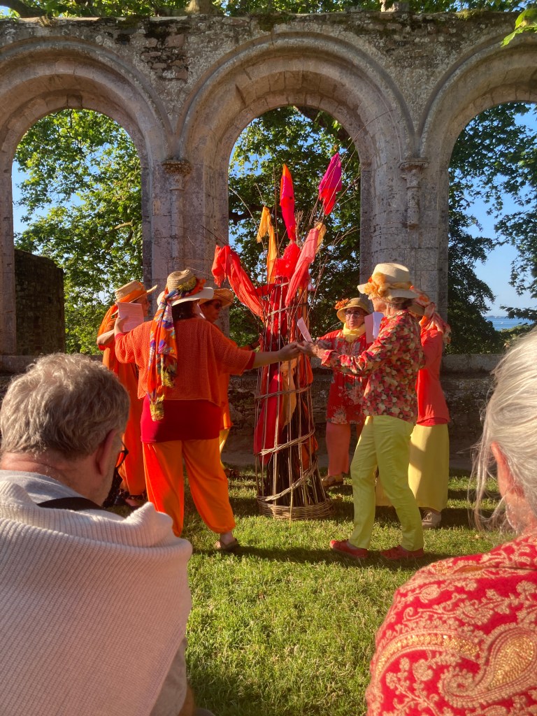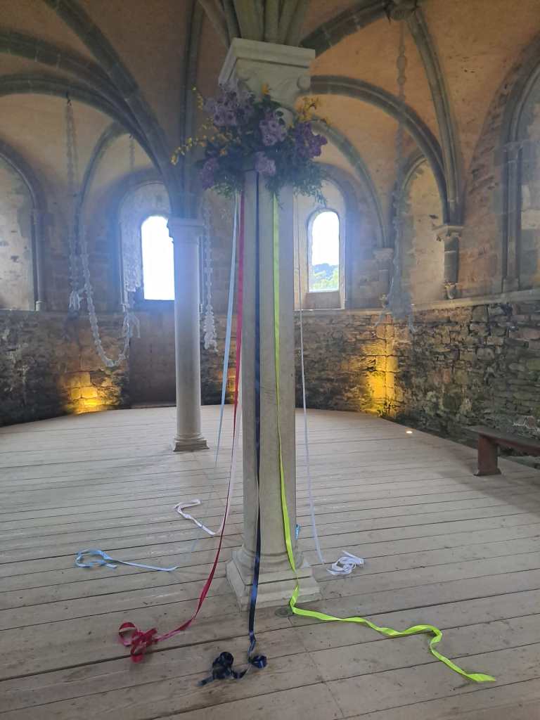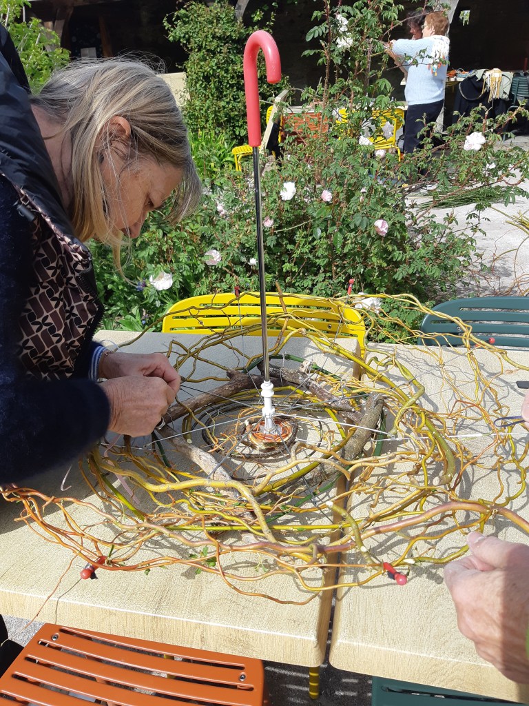 Des parapluies végétaux et des rubans colorés pour fêter Beltane