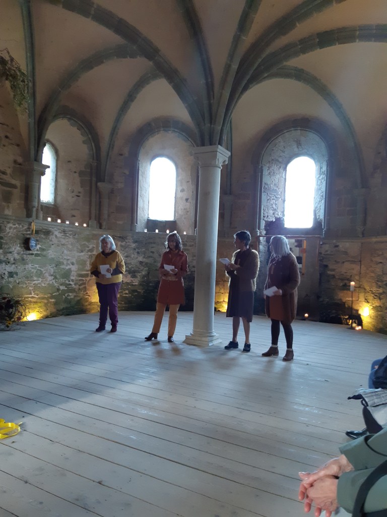 En toute intimité, le public se laisse guider par les mots des 8 bénévoles de l’Herbe Folle, lus dans différents espaces de l’abbaye.