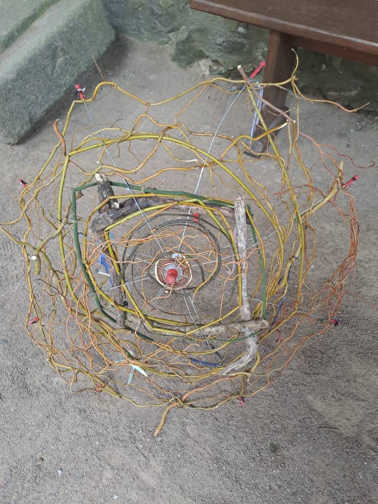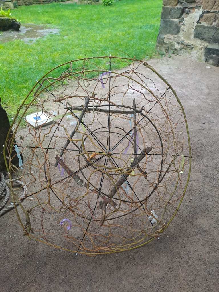 Des rubans de feu noués à une structure en osier pour célébrer litha