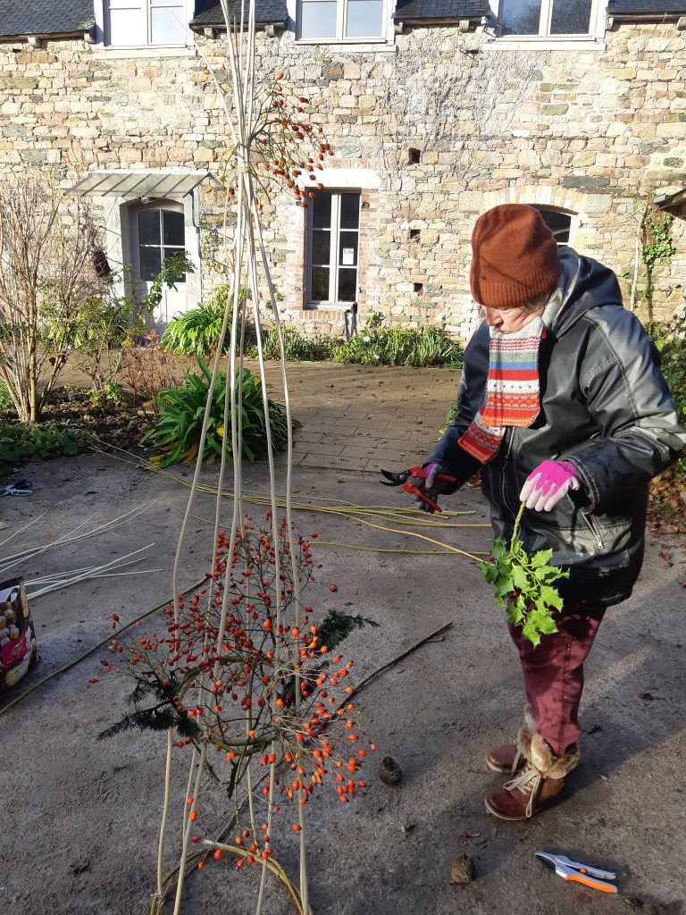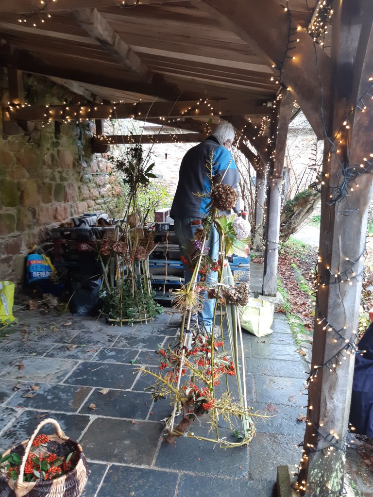 Sur une proposition du fidèle bénévole Gérard Laude, les volontaires se sont retrouvé(e)s pour créer des décors de noël sur la terrasse de l’Herbe Folle.