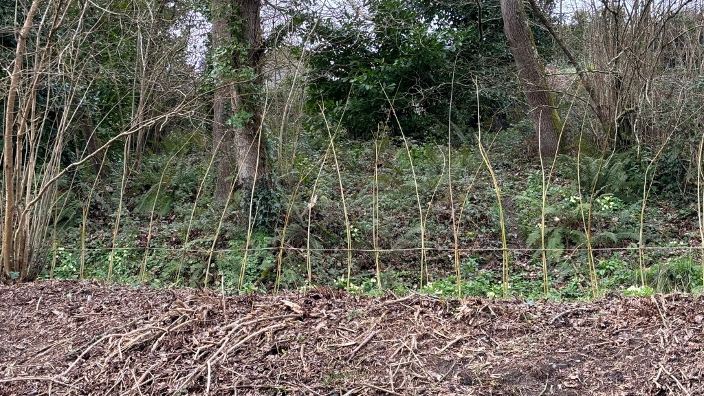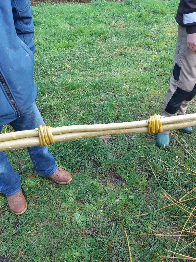Après la taille des oseraies, les brins d’osier récoltés ont permis aux bénévoles de planter la ligne de délimitation. Ces derniers pourront être tressés et ils vont progressivement reprendre vie et se couvrir de radicelles !
