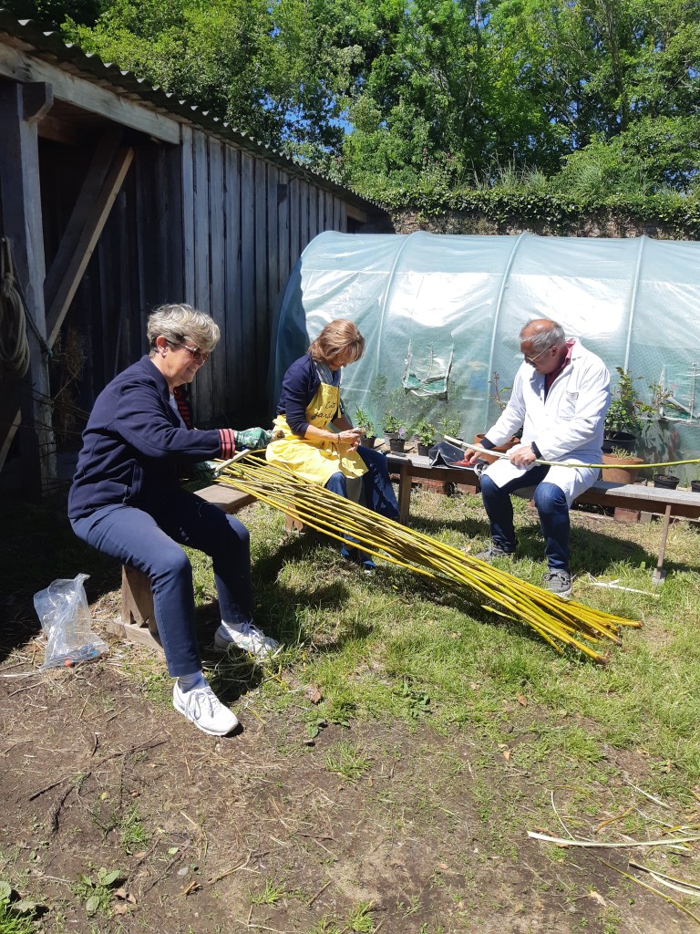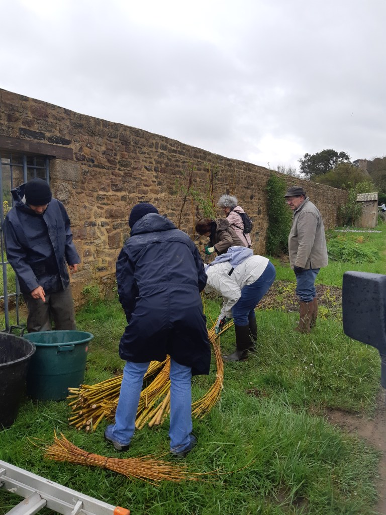 Tous les ans, les osiéristes se retroussent les manches pour fabriquer de nouveaux tuteurs ou réparer les anciens réalisés la saison précédente, pour le jardin clos de l’abbaye, sous le regard admiratif des jardinier.es et de l’équipe qui prend soin du site au quotidien !