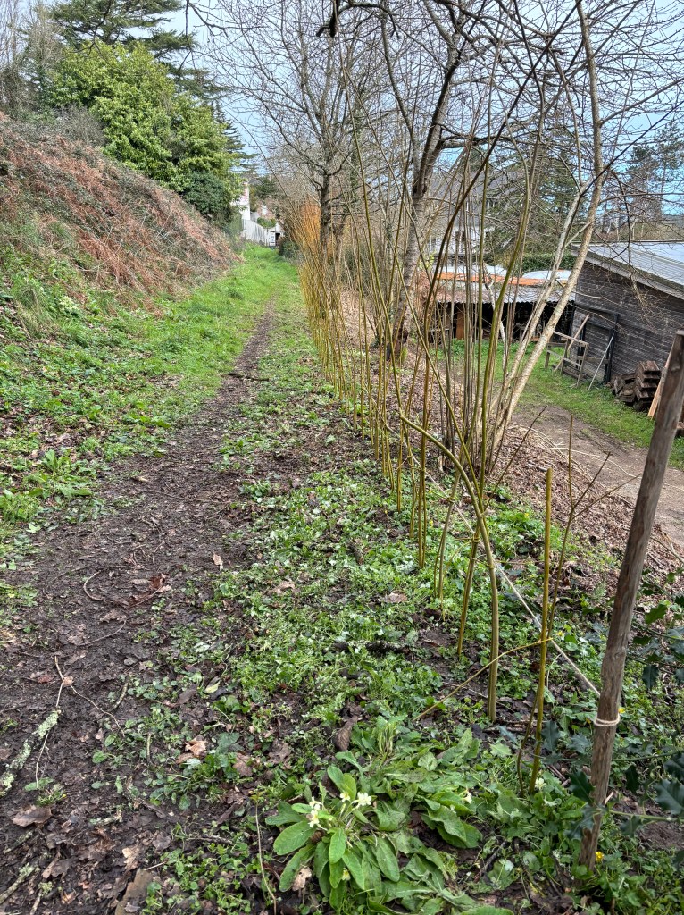 Après avoir fait un tour sur le site avec Jacques, le garde du littoral, le projet a germé de réaliser une haie en saules vivants pour protéger l’atelier situé dans la zone technique du Vallon.