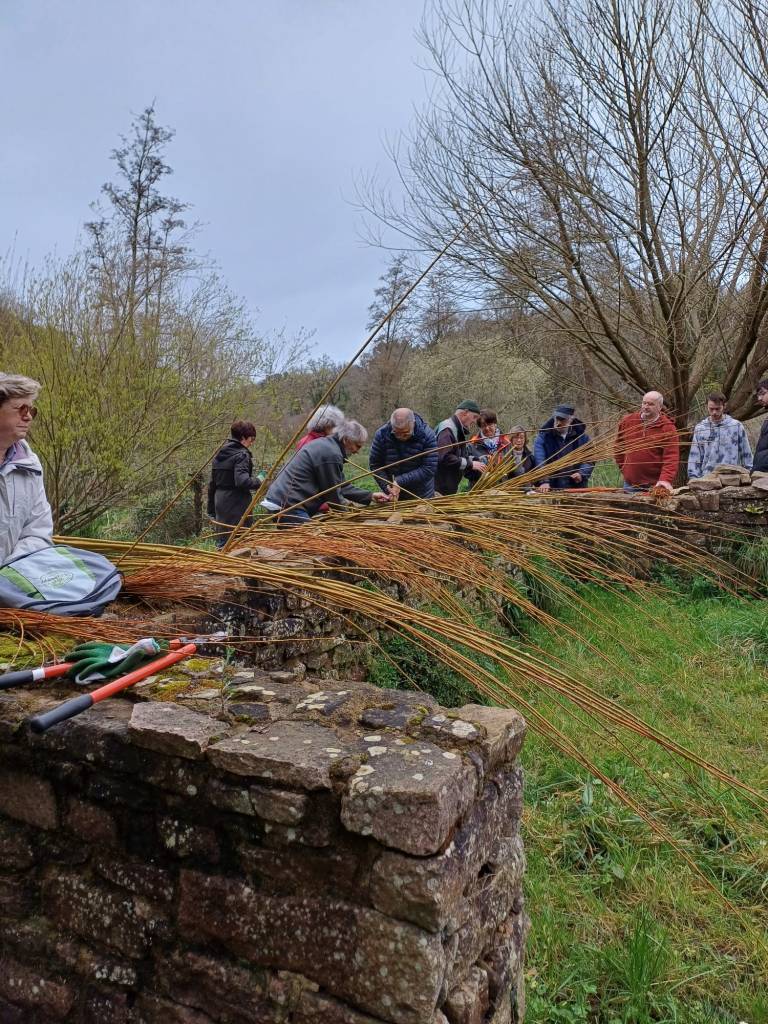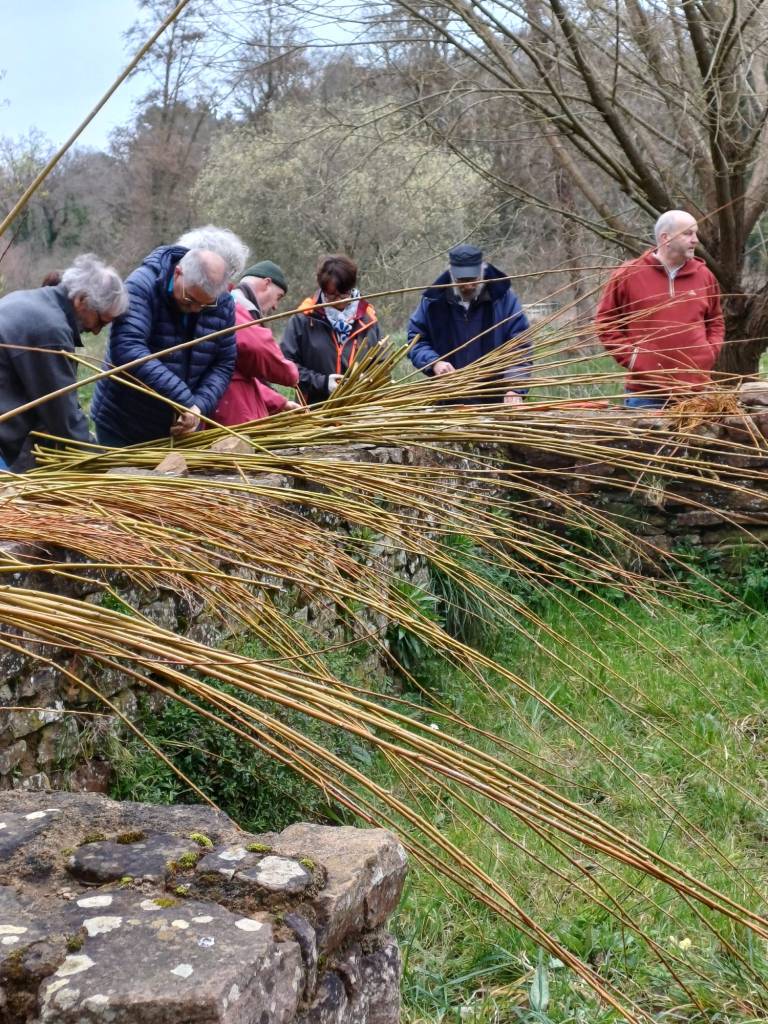 Tous les hivers, les saules sont taillés de façon à pouvoir récolter de l’osier, dont les brins seront ensuite valorisés sous différentes formes par les bénévoles : tuteurs pour le jardin clos de l’Abbaye, écorçage d’osier, ou tout autres formes souhaitées par les membres du groupe des osiéristes.