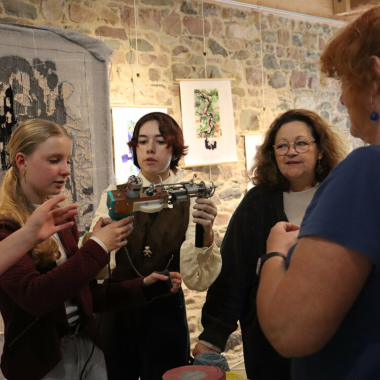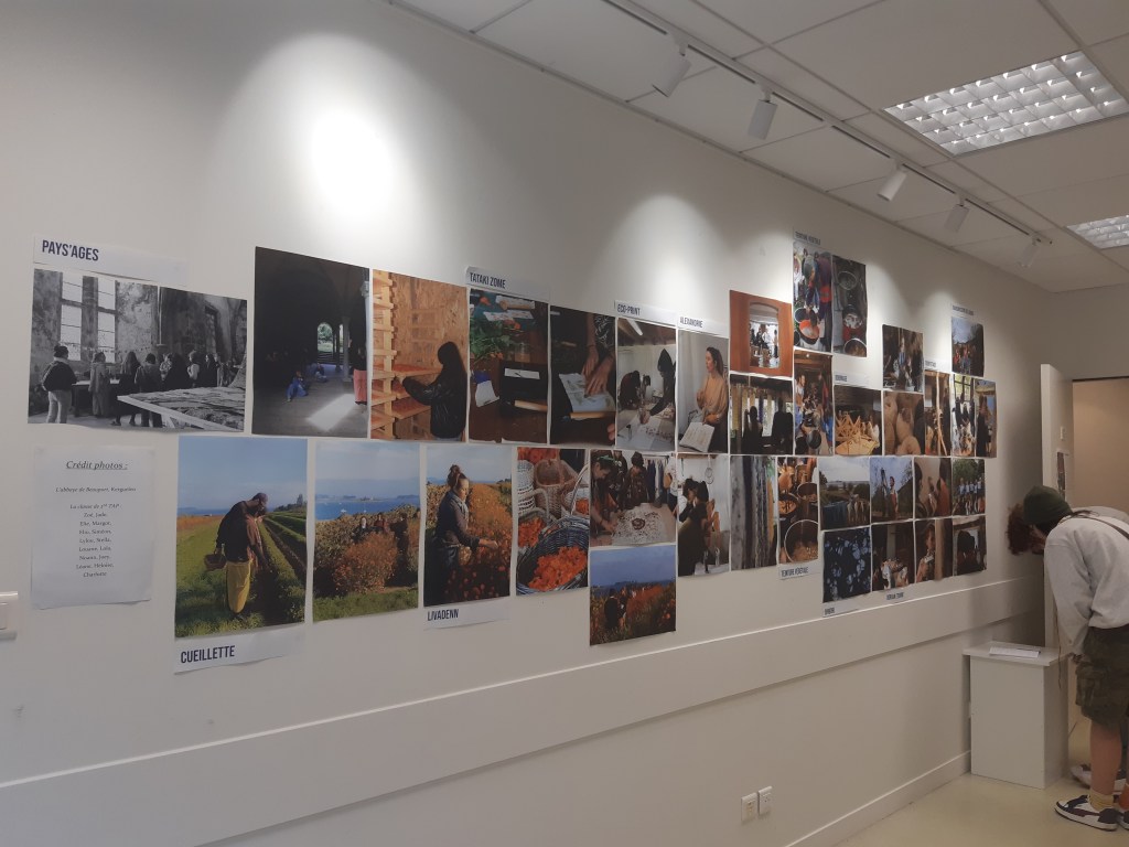 Les bénévoles ayant participé à l’atelier de transmission de savoir-faire mené par les élèves ont pu assister à l’exposition retraçant le projet « Tisser les couleurs d’un territoire ». Une exposition dont la scénographie et le contenu ont été entièrement pensés et conçus par les élèves au sein du CDI de l’établissement.
