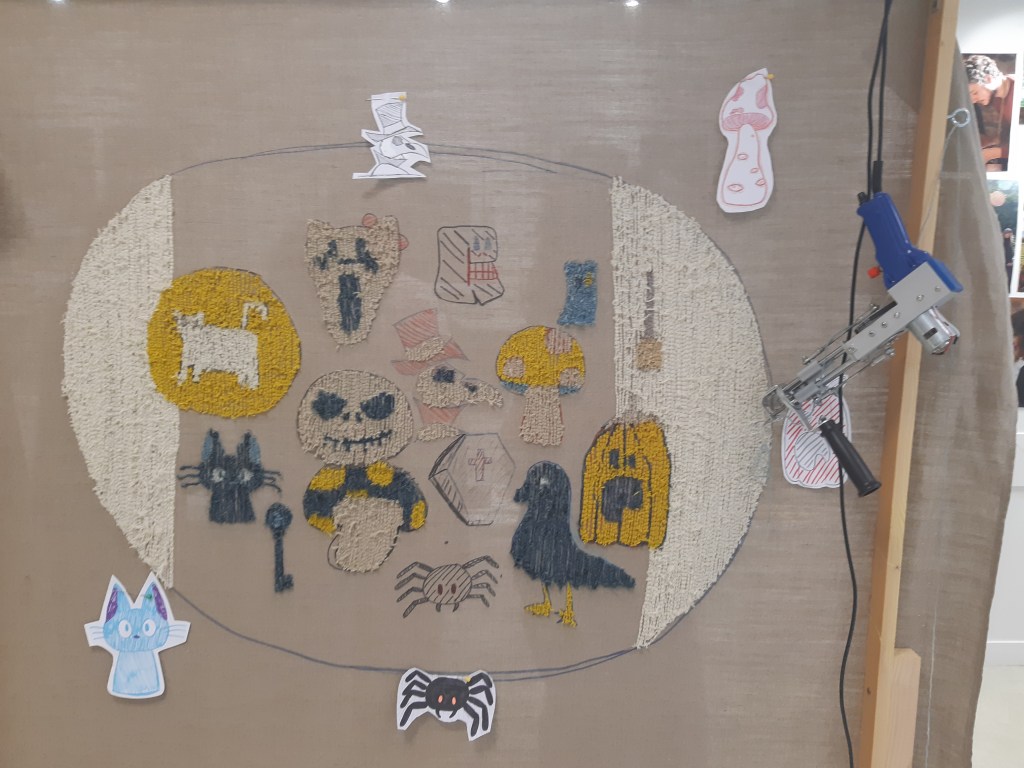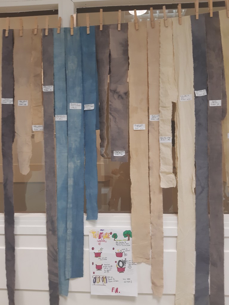En point d’orgue de ce projet, les élèves ont organisé deux ateliers de transmission des techniques apprises auprès des bénévoles de l’Herbe Folle, qui ont ainsi pu s’expérimenter au touffetage et à la teinture végétale !