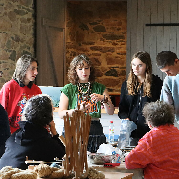 Visite de l’exposition « Pays’Âges » à l’abbaye, d’une exploitation de plantes tinctoriales et d’un atelier de teinture naturelle, initiation à la technique du touffetage de la teinture végétale avec différentes essences cueillies sur le site de Beauport. Autant de domaines et de champs d’explorations qui ont permis aux jeunes de se questionner sur le développement durable dans la mode.