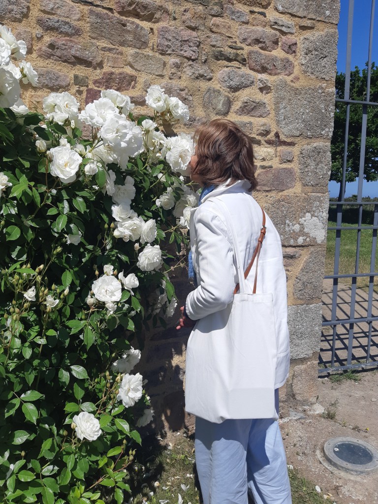 Accompagné(e)s de Mireille & Gilles Le Roux et de Sylvain Mérard le petit groupe s’est retrouvé pour se promener sur le domaine et les jardins de Beauport et contempler la floraison des roses qui s’épanouissent d’année en année grâce à leurs mains d’argent aiguisées !