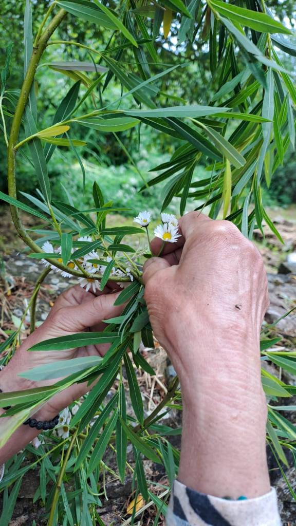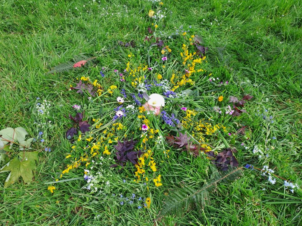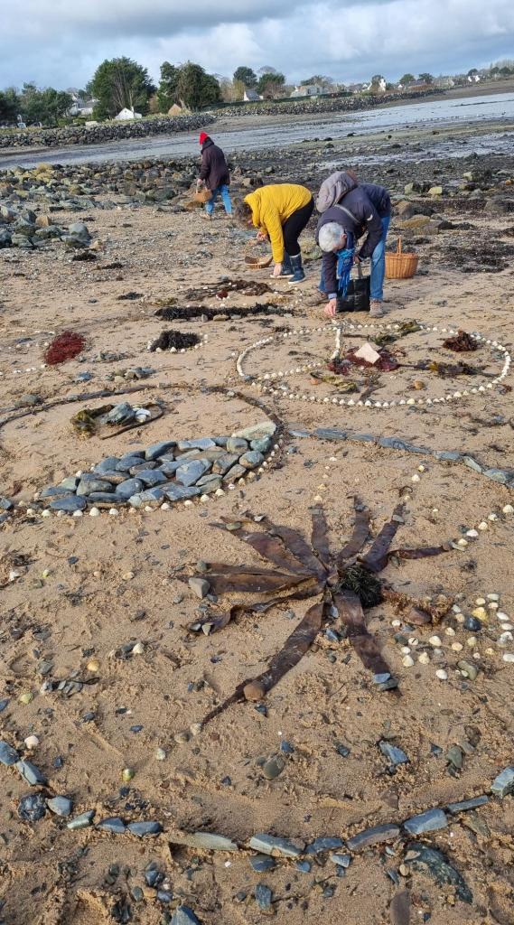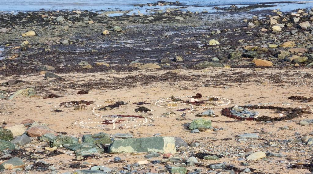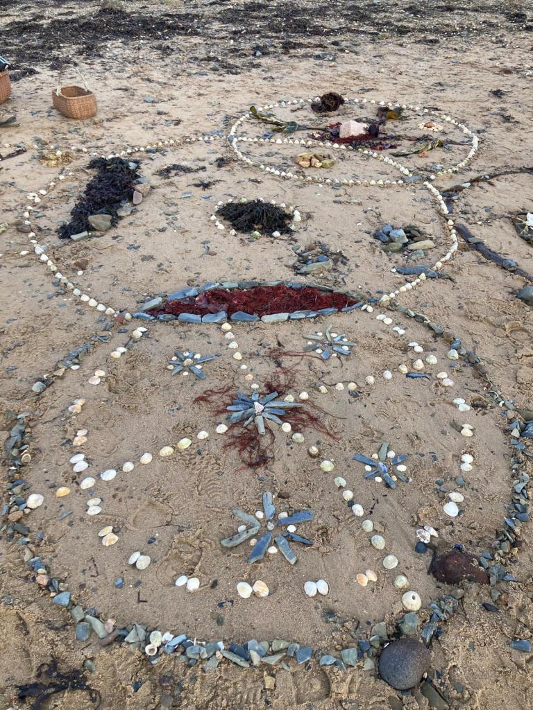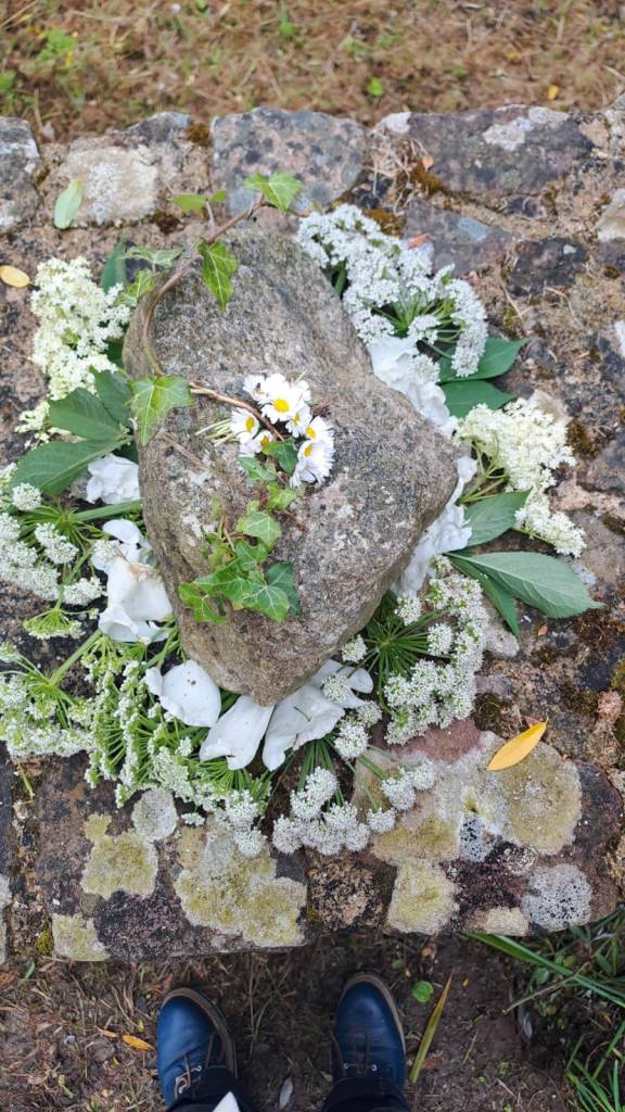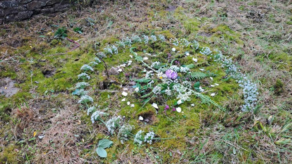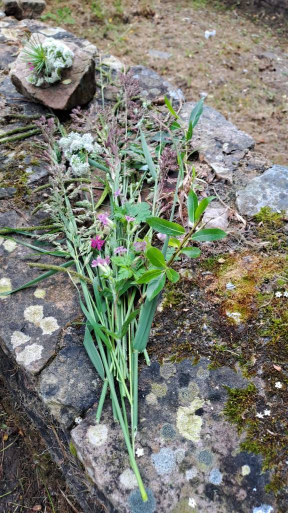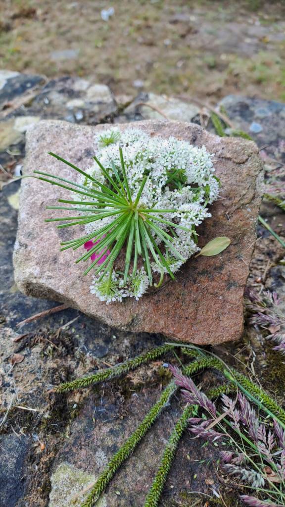 Puis, selon chaque saison nous nous retrouvons dans un endroit choisi et déposons, selon notre inspiration, nos récoltes éphémères pour créer un nouveau paysage collectif en lien avec celui exploré.