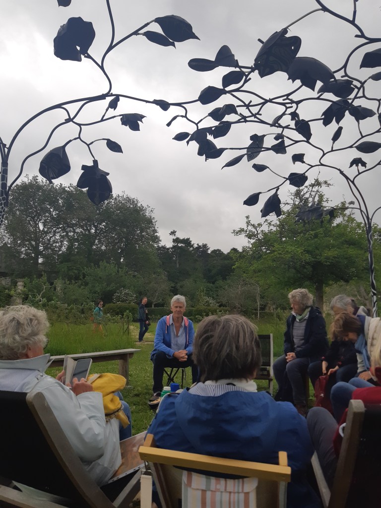 Confortablement installé(e)s sous la canopée des arbres à palabres des Ateliers BOA implantés dans l’un des carrés du jardin clos jusqu’à l’automne, Michelle Loncle leur a proposé de participer à une après-midi contée. L’idée était simple : jouer ensemble avec la virelangue et les sonorités des arbres à palabres !