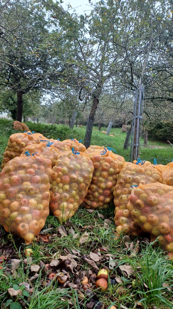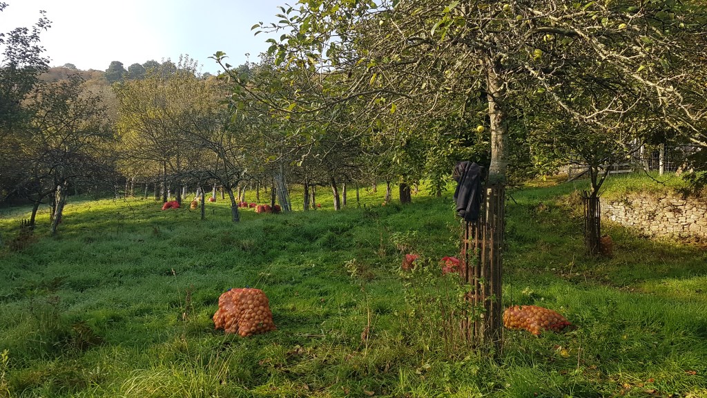 Dans les vergers de l’Abbaye on trouve près de 60 variétés de pommes différentes dont 48 sont endémiques, c’est-à-dire que l’on ne les trouve qu’à l’Abbaye. C’est la raison pour laquelle nous avons des vergers permettant de conserver ces variétés de pommes spécifiques au site.